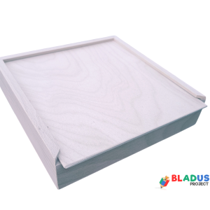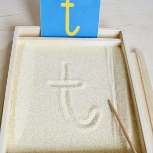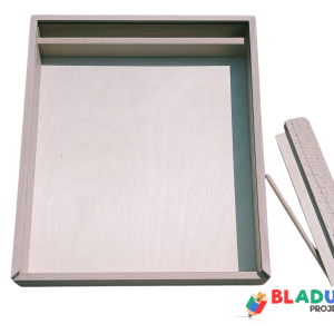 Pudełko-pomoc do nauki pisania liter i cyfr z miejscem na materiały sypkie