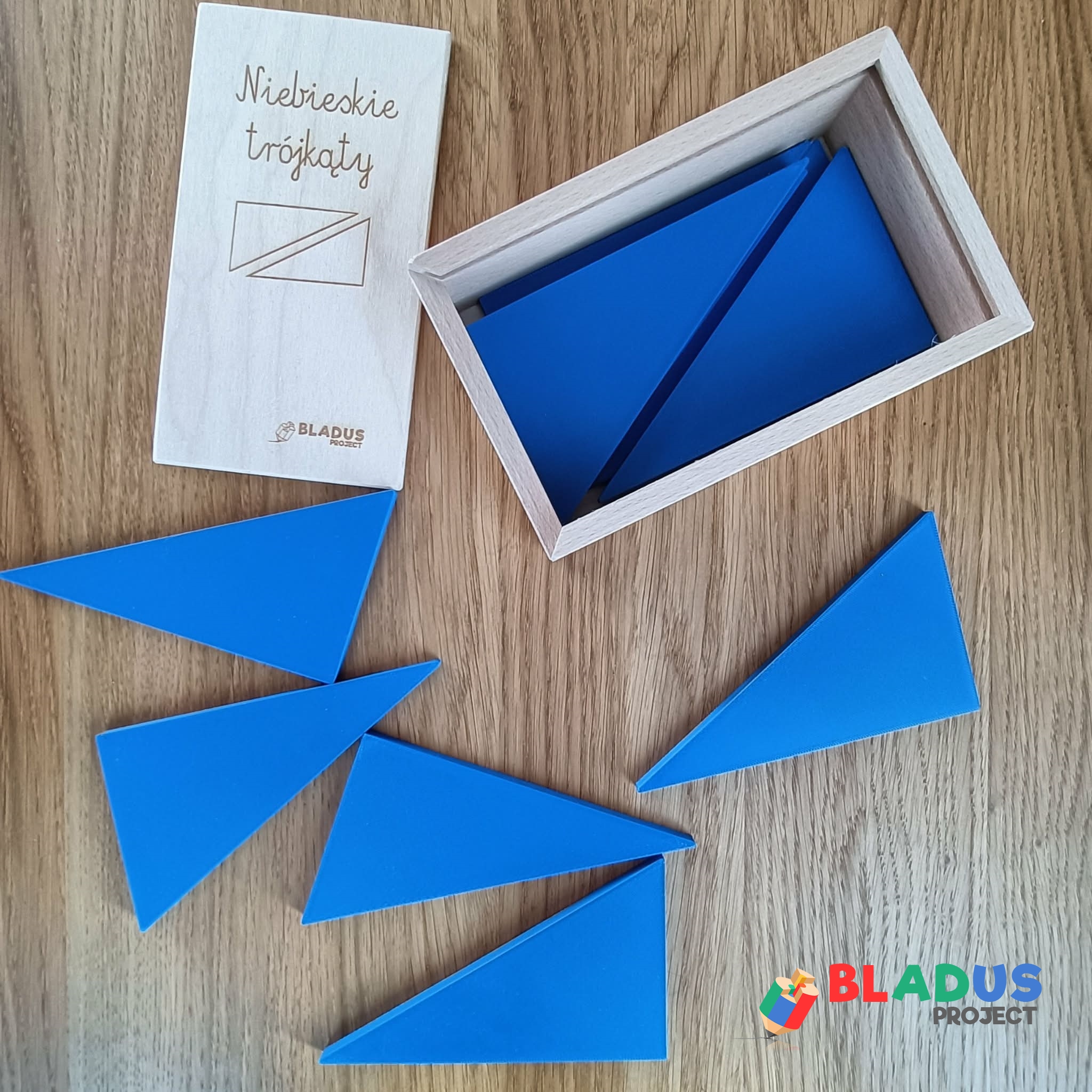 Zestaw zawiera 12 trójkątów prostokątnych i równobocznych w kolorze niebieskim, są one wykonane z najwyższej jakości biotworzywa, charakteryzują się niespotykaną lekkością i wyjątkową trwałością, w razie potrzeby moża je umyć.
